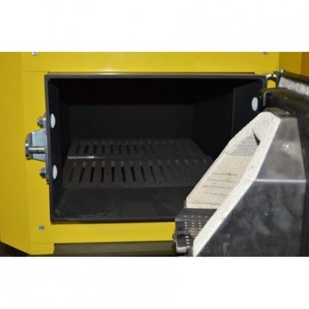 Котел изготовлен из высококачественной стали толщиной 5 мм, что гарантирует его долговечность и надежность. Топка глубиной 86 см обеспечивает длительное горение, позволяя котлу работать от 12 до 18 часов без необходимости частой загрузки топлива. Это значительно упрощает эксплуатацию и обслуживание устройства.